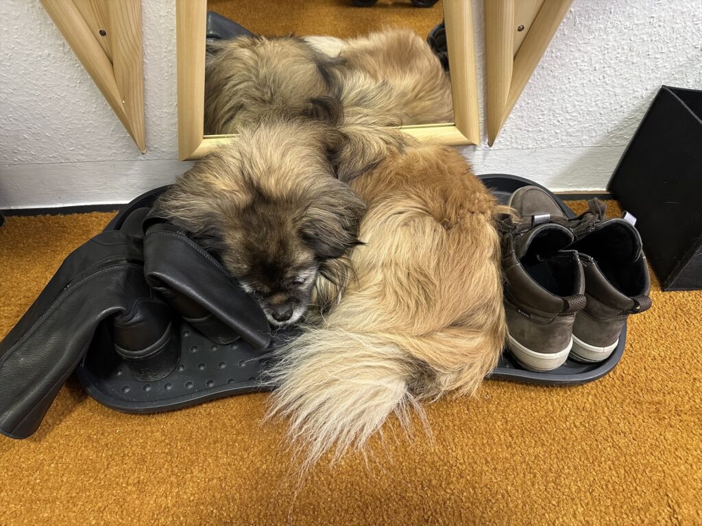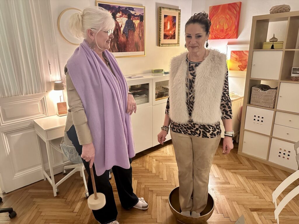 #1 – Also ich wär dann mal fertig für die Morgenrunde, Herrli!#2 – Während der MannMitHut mit Dremo eine ausgiebige Morgenrunde macht, bereite ich schon mal Frühstück vor. Meist beginne ich mit meinem, damit die Chiasamen noch ziehen können. #3 – Es ist ungemütlich draussen, d.h. die Badewanne ist vorprogrammiert. Wir haben in unseren vier Etagen neun Körbchen bzw. Liegeplätze für diesen Hund, doch zu gefühlt 90 % liegt er auf der Schuhtasse rum 🤷🏻♀️… #4 – Zur Sicherheit besorge ich bereits heute den Weihnachtskarpfen, denn ich will mich am 23. nicht anstellen. Fast am Ziel angekommen, laufe ich extra nochmals heim, weil ich auf’s Bargeld vergessen hab. Beim Zahlen stellt sich heraus, dass Hengstberger seit drei Monaten eine Bankomatkassa hat 😂…#5 – Nach dem Mittagessen komme meist ich mit der Hunderunde dran. Wir treffen einen süßen kleinen Kerl (irgendwas Asiatisches) der sich aber nicht so nett verhält, wie er aussieht. Dremo ist dennoch fasziniert…#6 – Unglaublich was Babsi an Weihnachtsleckereien gezaubert hat! Heute bringe ich Susanne ihre Bestellung mit. Damit ich sie ja nicht vergesse, stelle ich sie gleich auf die Stiege.#7 – Mit der überfüllten U6 fahre ich zuerst in die Hernalser Hauptstraße, wo ich mich in einem Beautysalon mit meiner lieben Freundin Gerda aus Salzburg treffe. Sie unterstützt heute eine ihrer Partnerinnen bei einem RINGANA-Tag im Studio. Warm schmeckt unser chi auch sehr lecker!#8 – Anschließend marschiere ich zu Fuß in die Pasteurgasse und komme erstmals in den Genuss von oben über die Strudlhofstiege zur Aloha-Praxis zu gehen. Diese Treppe fasziniert mich immer wieder aufs Neue, egal zu welcher Jahreszeit. Sie ist einfach schön!#9 – Aloha-Feeling, wohin man schaut – bei Susanne kannst du dich gar nicht genug umschauen! Das Motto der „Goldenen Momente“ passt hervorragend in diese Räumlichkeiten.# 10 – Ich nütze die Gelegenheit mich in die große Klangschale zu stellen und zu spüren, wie die Schwingung den gesamten Körper durchläuft. Total angenehm!#11 Gabriele Schuster-Klackl begleitet eine harmonischen Frauenrunde einfühlsam auf der Suche nach den Goldenen Momenten des Jahres 2025. Da gab es ganz schön viele 🤗!#12 – Nach einem gemütlichen Ausklang brachte mich mein Susanne-Taxi noch zur U6 in die Spittelau und gegen 23.30 h kam ich schließlich wohlbehalten daheim an.