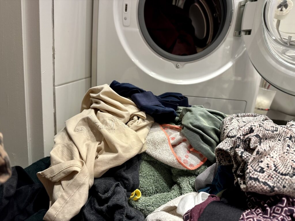 #1 – Frühmorgens reißt die Waschmaschine ihr hungriges Maul auf. Bevor ich in die Stadt fahre, um mich mit Katrine und Beatrix zu treffen, wird sie noch gefüttert.