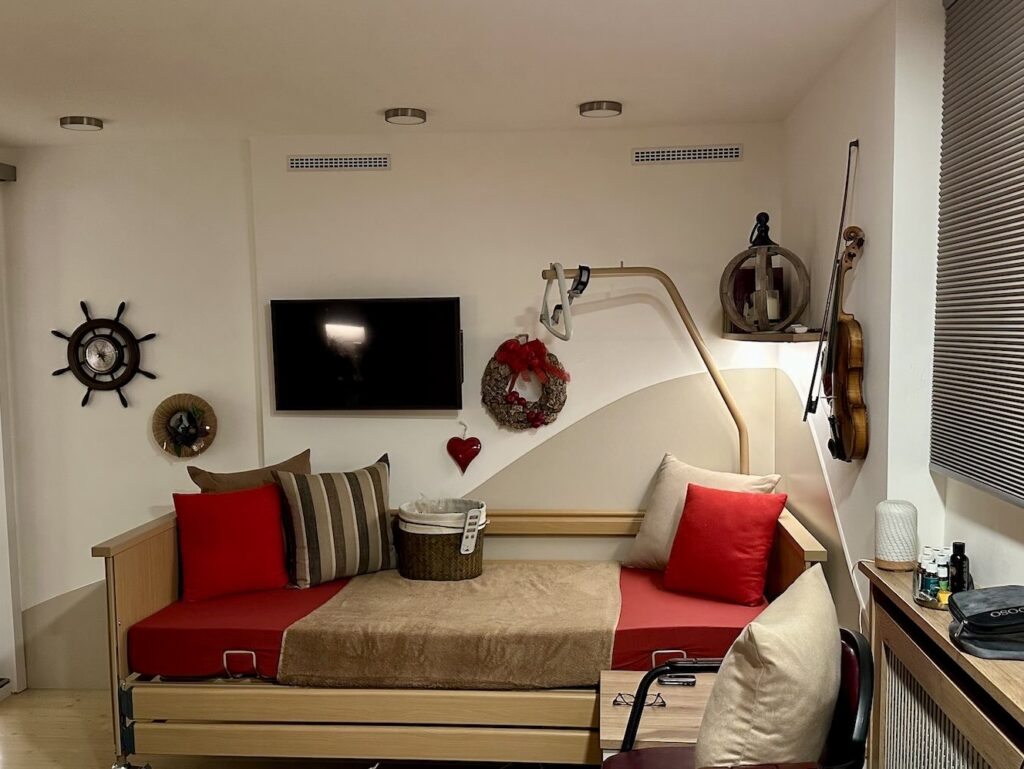 Anfang Februar bekamen wir ein Pflegebett, was den Alltag für meine Mutter (und auch mich) wesentlich einfacher macht. Die vorhandene Bank kommt in der Zwischenzeit in mein Studio und ich nütze sie gelegentlich zur Entspannung.